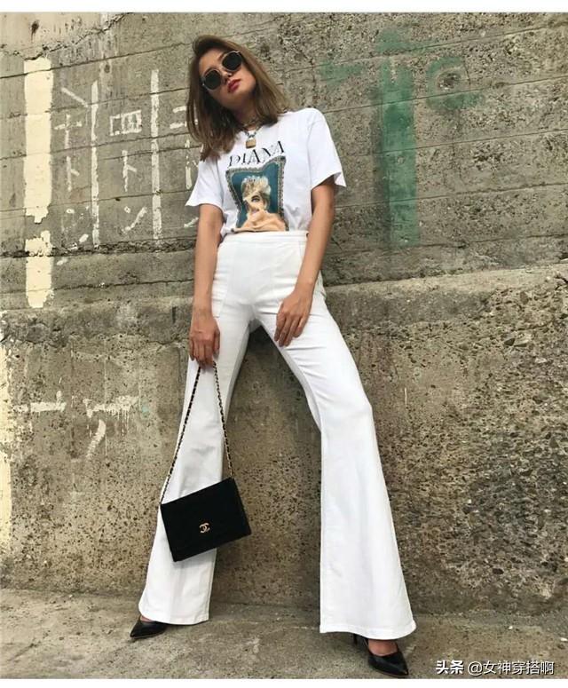喇叭版型的小白裤继承了复古的元素的时髦感,具有很好的遮肉、显瘦效果,腿型不太完美的女生可以选择穿条喇叭版型的小白裤,秒白变长腿精。九分长度的小白裤穿起来长度刚刚好,长及脚面的裤子也就只有个子高、腿长的女生能撑起来。